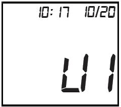 - Au démarrage tous les segments de l'écran s'affichent (auto test pour montrer qu'aucun segment ne dysfonctionne). Puis le numéro d'utilisateur actuel s'affiche pendant 5 secondes (U1, U2, U3 ou U4). A cet instant, appuyez sur le bouton M pour changer d'utilisateur.